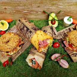 For those who prefer a vegetarian option, the Vegas Bagel with tzatziki sauce, avocado, and a mix of fresh veggies is a must-try. Don't miss out on their flavorful wraps like Le French with smoked beef, turkey, and ham, or the Kentucky with crispy chicken and a homemade Kentucky sauce.
